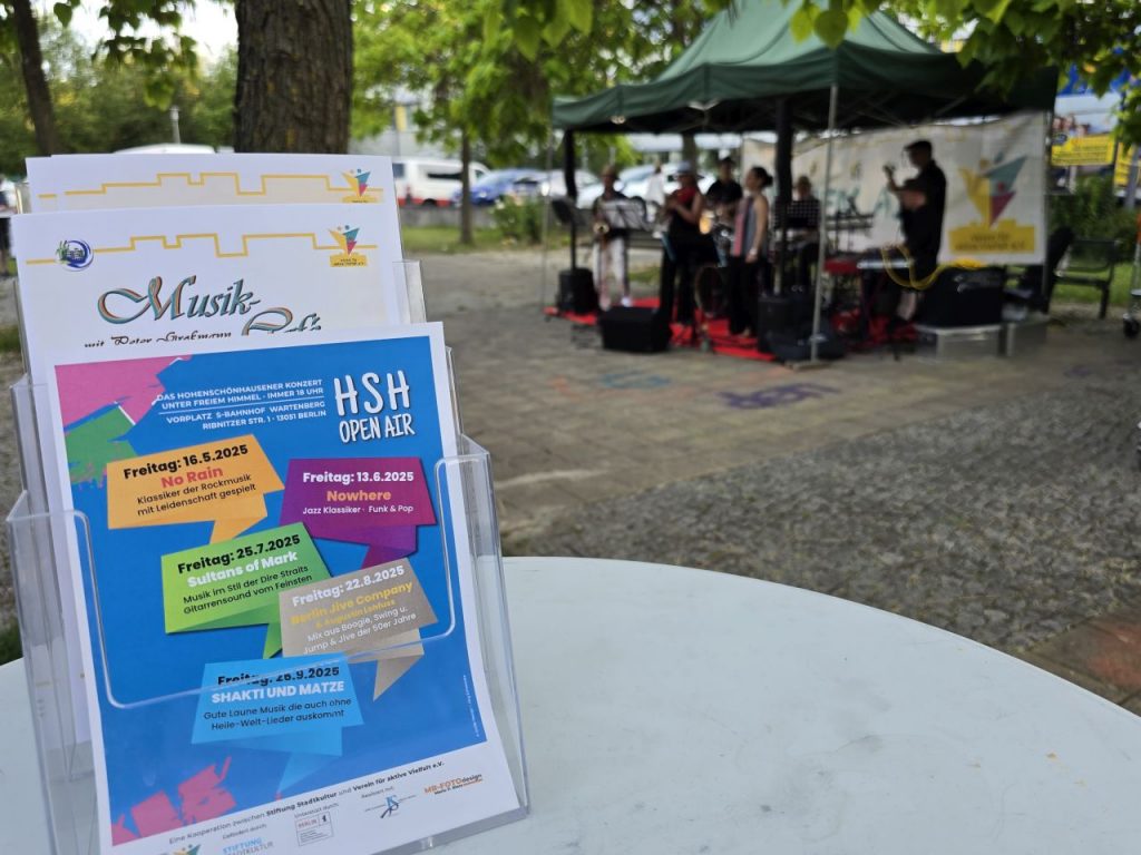 Am 13. Juni fand im Rahmen der HSH-Open-Air-Reihe am Bahnhof Wartenberg unser zweites Konzert in diesem Jahr statt. Die Band „Nowhere“ spielte eine breite Palette an Musikrichtungen wie Jazz und Pop, von Klassikern wie „Autumn Leaves“ bis zu Amy Winehouse. Circa 150 Gäste genossen den Abend bei Getränke und Bratwurst. Ein herzliches Dankeschön an die Förderer, Organisatoren und ehrenamtlichen Unterstützer*innen, Das nächste Open Air Konzert ist am 25. Juli mit „Sultans of Mark“.